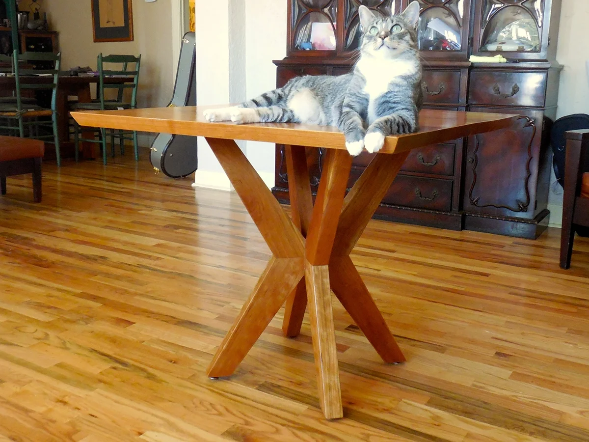 Kitchen table with a dynamic chevron pattern base. Top and base are American black cherry.